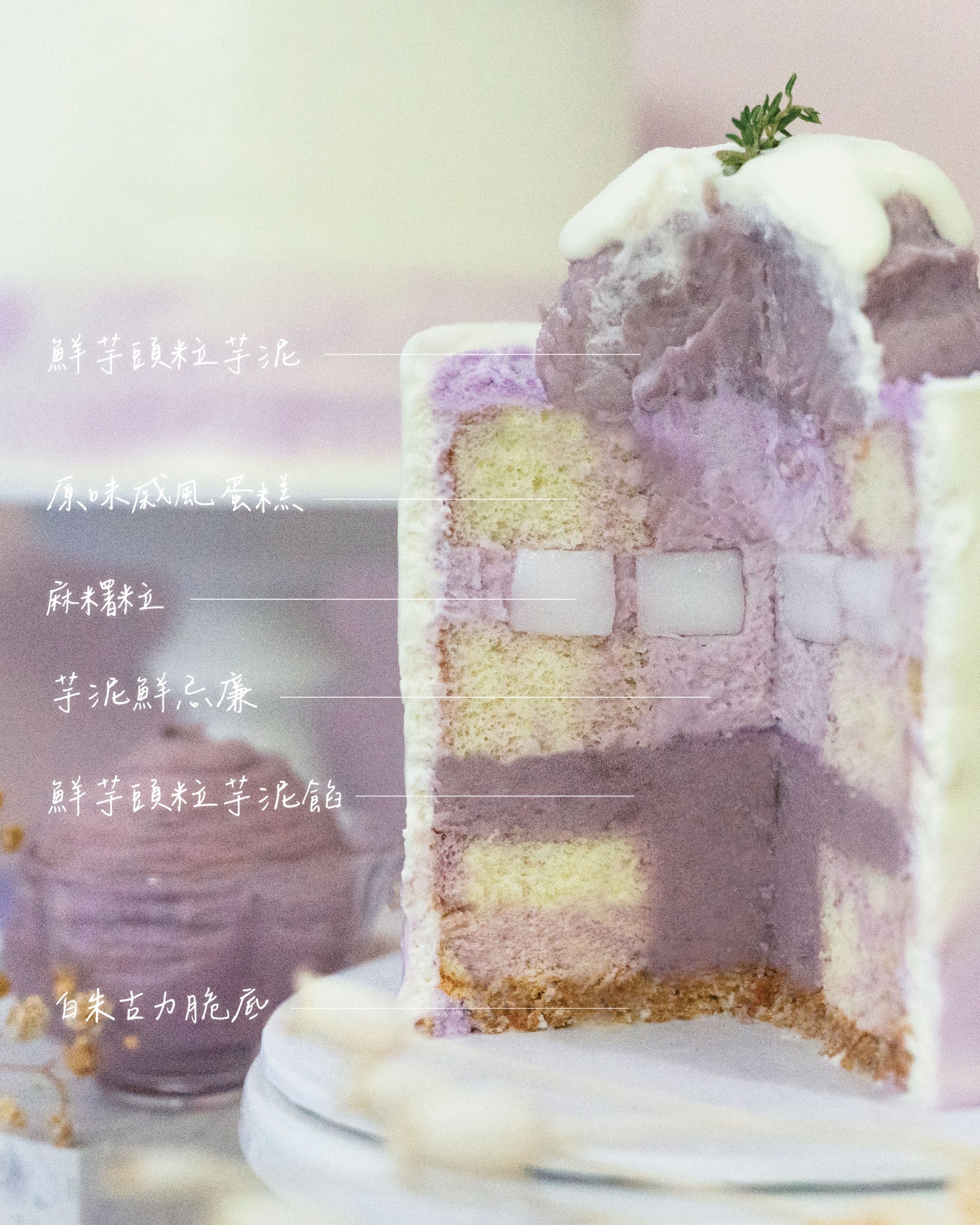 Two-Tone Vanilla Chiffon Cake / Mochi / Taro Fresh Cream / Fresh Taro Paste Filling / White Chocolate Crunchy Base